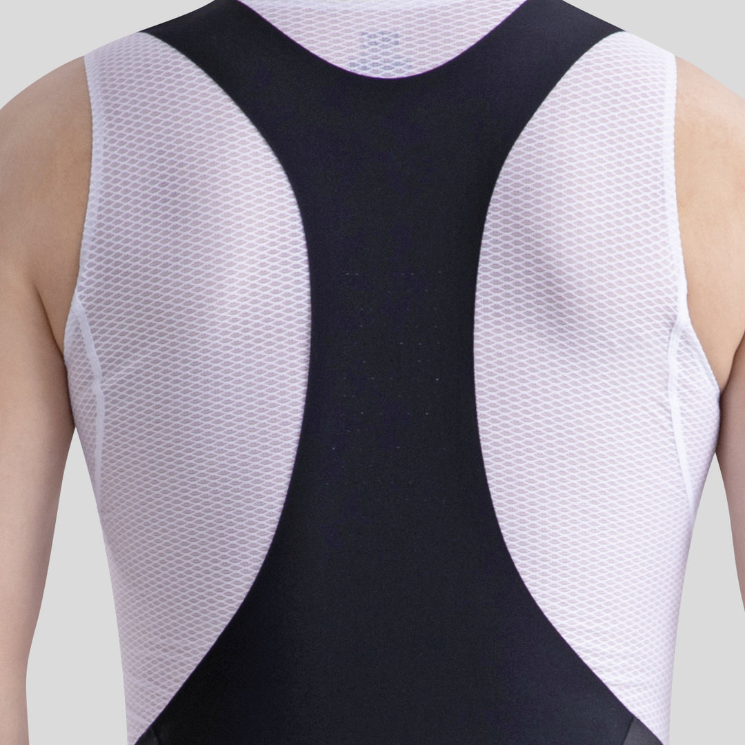 The fabric of the bib shorts adopts a one-piece weaving method, with striped design on the thigh part of the fabric, which better protects the thigh during cycling and effectively relieves soreness. The anti-slip of the ankle and the woven fabric of the body are combined together, reducing the friction of sewing thread on the legs. This is a directionally developed fabric that is very suitable for cycling