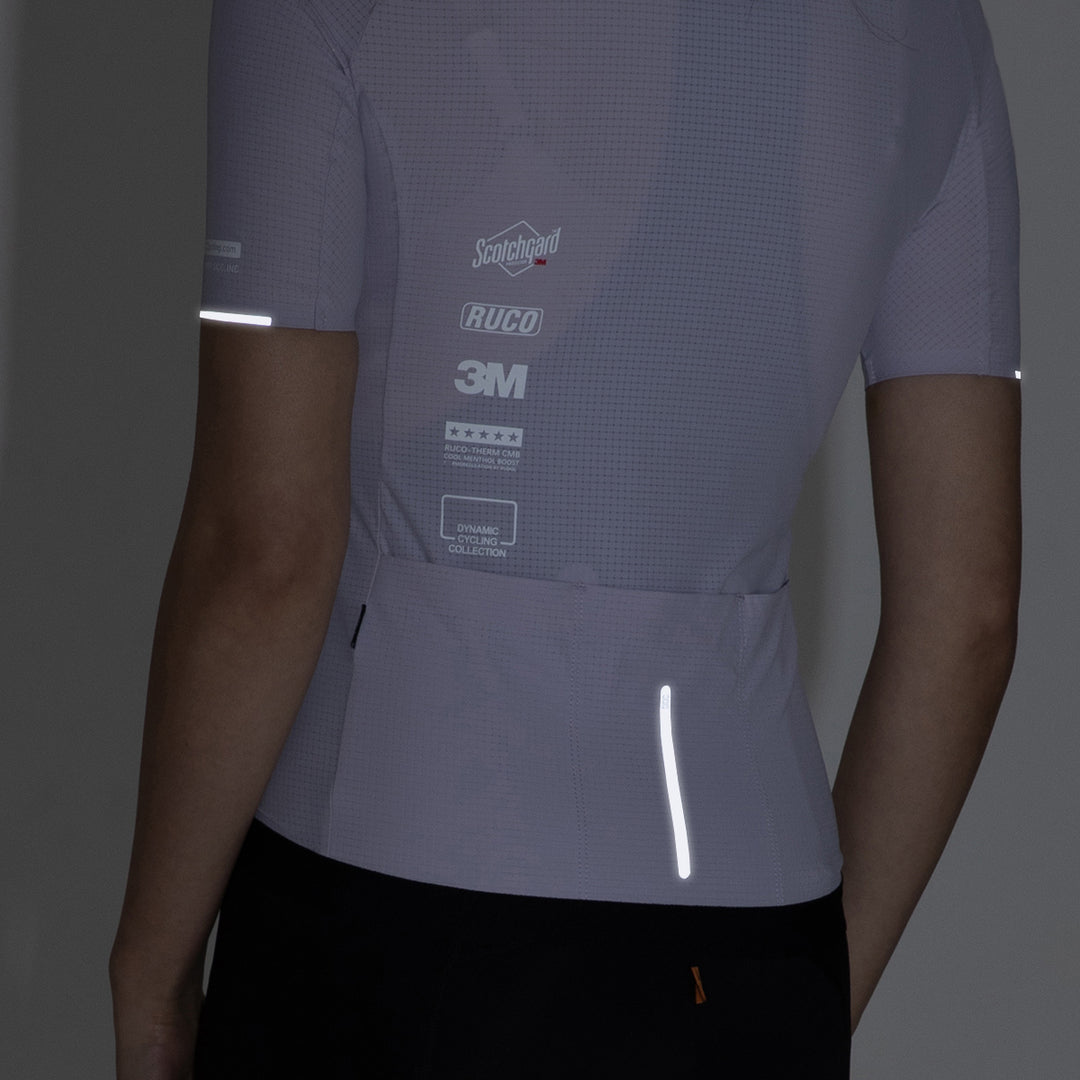 This woven fabric is used on sleeves to better improve the aerodynamic performance of clothes