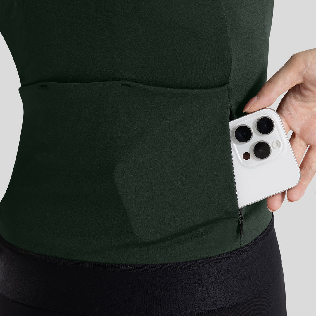 An elastic rear hem with internal silicone logo print keeps the jersey securely in place